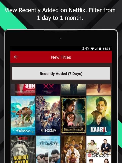 - Lihat apa yang baru di Netflix. Menyaring semua judul baru ditambahkan oleh 24 jam, 7 hari, 14 hari atau 30 hari.