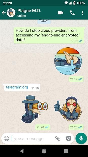 Pengembang yang ingin mempublikasikan stiker Telegram lainnya karena aplikasi untuk WhatsApp dapat menghubungi kami di stickers@telegram.org