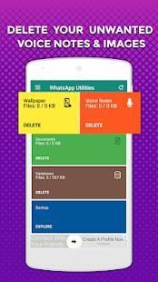WhatsApp Utilities adalah All In One alat untuk membersihkan file WhatsApp Anda. Hal ini juga digunakan untuk menyimpan pengguna cerita dari kontak Anda. Hal ini juga membantu menghemat ruang penyimpanan dan meningkatkan perangkat Android Anda.