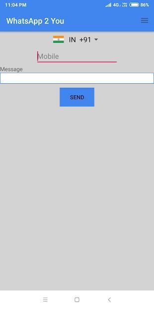 WhatsApp2you app provide you the facility to send whatsapp message to the number which is not saved in your phone-book. Lots of time we have to send some message or pictures in office, home or other places to someone whose whatsapp number is not saved in our phone-book. Now you can send messages to them easily by using WhatsApp2You. To send message you must have an active whatsapp account and app installed on your mobile.