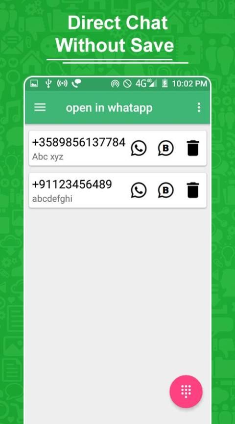 Jika Anda ingin mengirim pesan tanpa menyimpan nomor ke kontak Anda untuk WhatsApp WhatsDirect - Pesan Langsung untuk WhatsApp, berikut adalah aplikasi untuk Anda. Kirim pesan tanpa menyimpan kontak: buka pesan obrolan WhatsApp tanpa nomor telepon disimpan ke daftar kontak.