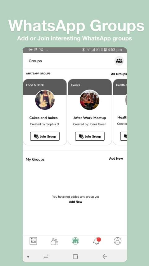 ⇒ Tambahkan atau Bergabunglah dengan grup WhatsApp yang menarik yang cocok dengan minat Anda, baik untuk pertemuan, bisnis, atau bersenang-senang.