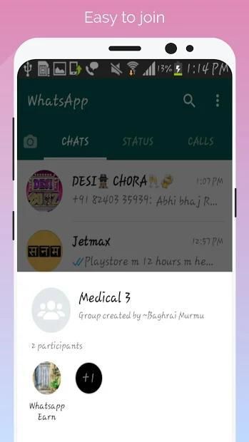 This app has 300+ whatsapp groups and all the groups are new and can be joined easily. But don't post any kind of adult content in this group or you will be removed from groups. This app is for all kinds of social and business purpose.