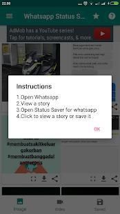 Whatsapp Status Saver app let you download photo image and video of whatsapp status easily. Friendly menu of Whatsapp Status Saver make you download photo and video in a second. Whatsapp Status Saver allows you to share right from app to your friends. Also You can setting in notification feature if you want get notification for new Whatsapp photo and video status.