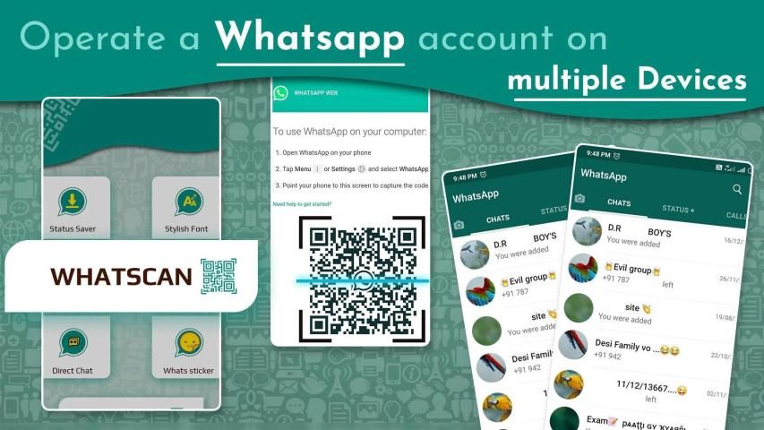 Whatsweb Scanner with stickers,qrcode and status downloader & direct chat