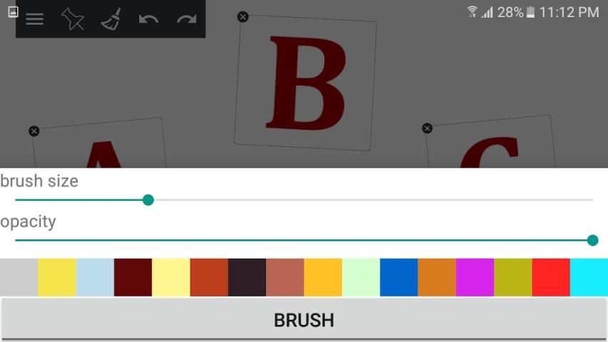 The whiteboard application will enable you to convert your mobile device into a writing and drawing board. You can also bring pictures from the studio or camera, as well as the English characters, and you can change the background to bright colors.
