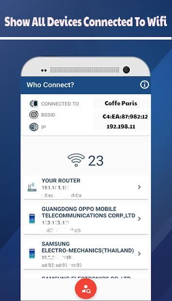 Who uses my wifi is a unique application with many different features, the most prominent of which is the knowledge of WiFi connected and my wifi control
