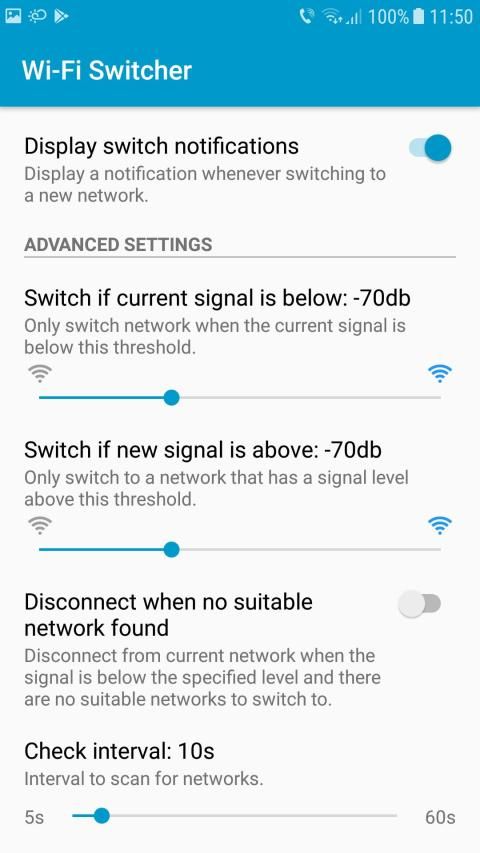 Aplikasi ini secara konstan memonitor level jaringan Wi-Fi dan secara cerdas beralih ke jaringan yang lebih baik setiap kali sinyal saat ini menjadi terlalu lemah.