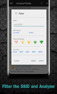 * Tersedia filter: Band WiFi, kekuatan sinyal, Keamanan dan SSID