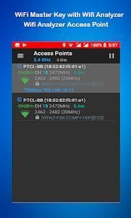Optimize your WiFi network using Master WiFi Key Viewer & Wifi Analyzer by examining surrounding WiFi networks, measuring their signal strength as well as identifying crowded channels and WiFi key recovery supported on root devices