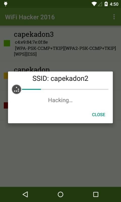 Lelah membayar untuk akses WiFi? Gabung ke klub. Sayangnya, aplikasi ini tidak akan dapat melakukan apa-apa untuk tagihan internet Anda, tetapi akan memungkinkan Anda untuk prank teman Anda dengan berpikir bahwa Anda memiliki kemampuan untuk hack jaringan nirkabel! Biarkan aplikasi memindai tersedia WiFi, pilih jaringan, maka akan bertindak seperti itu hack sejenak sebelum memberikan password palsu! Akan menyenangkan pernah berhenti? NGGAK!
