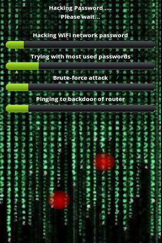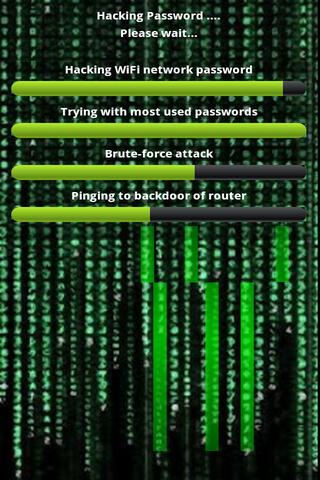 This is the best android application to prank your friends that you can hack the WiFi networks.This app have software for making jokes with friends aboutWiFi networks hacks.This is not a harmful software, but it is very useful for fun and entertainment.Prank that you can unlock any protected WiFi network.Hava very fancy animations but does not contains any software that can do any influence od WEP or WPA2 security. It just presents beautiful graphical animations and images. This application will never find the network key but it will give you a feeling that it does some discovering on the network key. It doesn39;t change anything if the security is AESCCMP encryption or some other encryption, cause this have no influince on the animation.Also no mather of the type of internet connection or the type of the router that is present, the animations are the same. The best wifi hacking joke software for Android at the market.This is joke app to prank your friends. You can take the phone and go to someone home and run this app pretending that you will hack his security password but this is NOT a software that can find password it just contains animations.