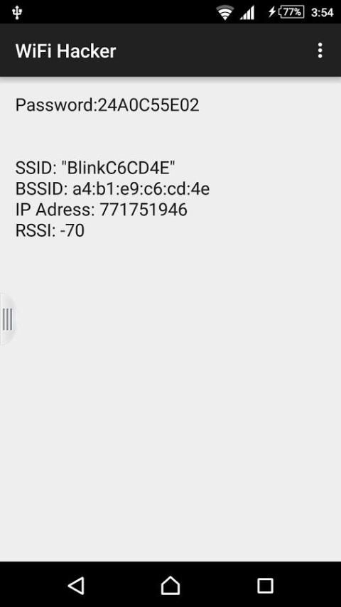 This android application let you know the IP address, SSID, BSSID, and RSSI of any WiFi connected to your device, and it will give a random password to fool your friends as if you are hacking the WiFi.