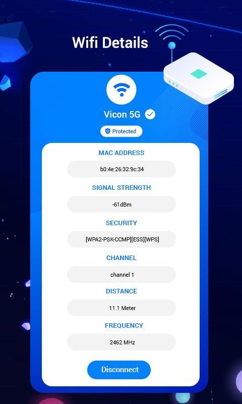 - It also display all details of WiFi information for both secured & unsecured WiFi like: