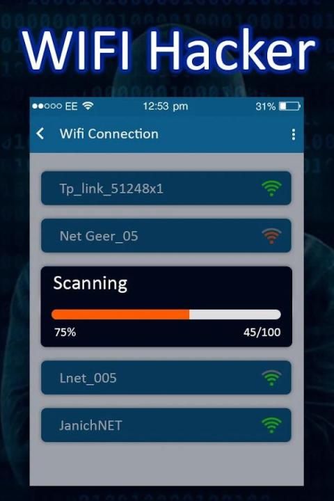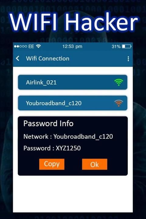 Aplikasi ini akan menampilkan semua jaringan wifi tersedia dan akan klik di atasnya, nyata seperti pengolahan akan mulai dan pada akhirnya sandi akan ditampilkan. Hanya satu kunci untuk memecahkan wifi dan hack semua password. Jadi itu adalah aplikasi lucu digunakan untuk prank teman Anda dan bersenang-senang. teman Anda akan terkejut melihat hal yang menakjubkan ini terjadi. Anda akan terlihat mengagumkan dan profesional.