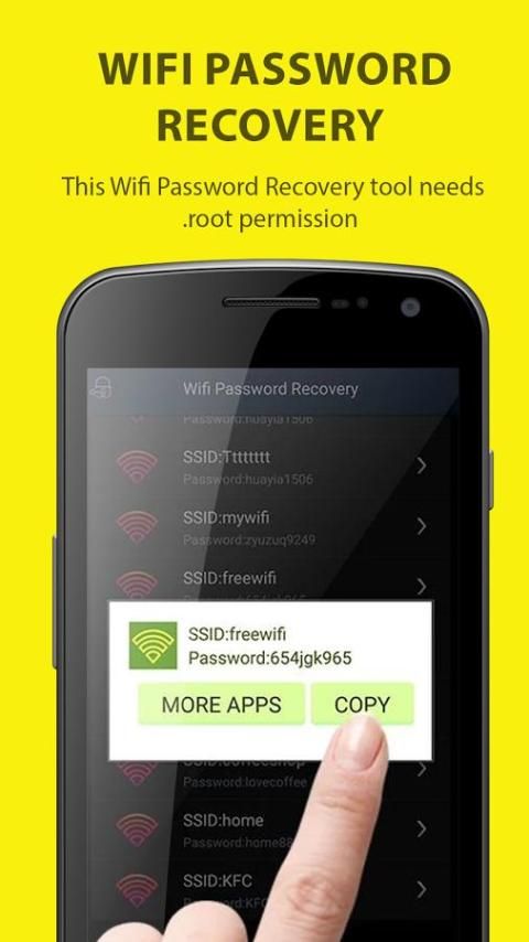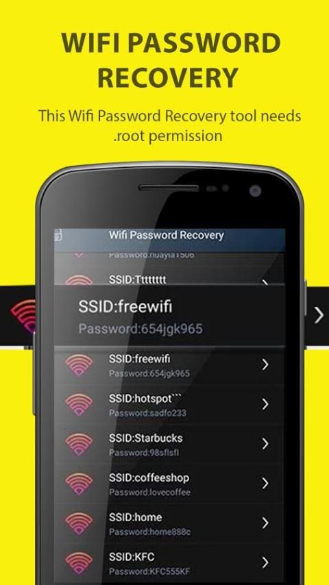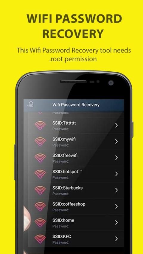 Wifi Password Recovery adalah alat wifi yang berguna yang membantu Anda untuk pemulihan semua password dari jaringan nirkabel Anda pernah terhubung ke. Hal ini sangat sering bahwa kita lupa password dari jaringan wifi, tidak khawatir, Wifi Password Recovery akan membantu untuk pemulihan semua password dari database sistem anda. Tapi ini memerlukan izin root.