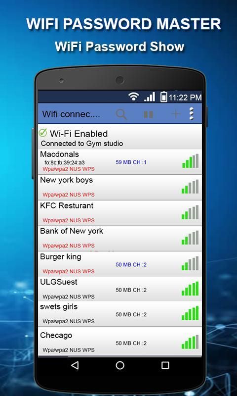 Wifi password Master key app is a simple and free wifi password key,master wifi key,wifi password recovery,wifi password reader,wifi password show,wifi master key recovery app. wifi password Recovery App that helps you to see passwords for wifi Networks You've Connected before.