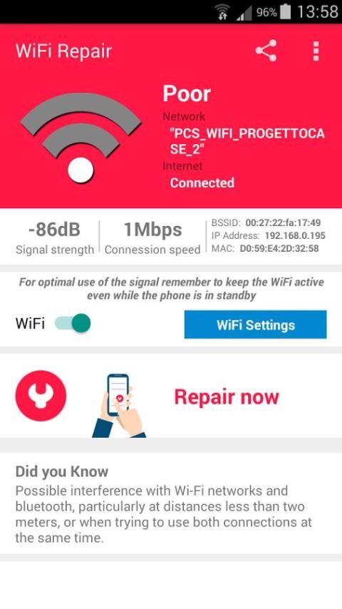 WiFi Perbaikan adalah satu-satunya aplikasi di dunia yang mampu mendeteksi masalah dalam koneksi Wi-Fi dari smartphone Anda dan mengoptimalkan koneksi Anda hanya dengan satu kali klik.