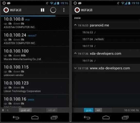 -WifiKill dapat menunjukkan kecepatan transfer data (unduh, unggah) perangkat yang diambil.