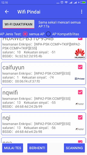2. Anda dapat menghubungkan tes koneksi Wi-Fi dengan SSID tertentu pada waktu yang sama dan memverifikasi download file. Pada saat yang sama benar-benar WEP, WPA, WPA2 IEEE802.1x dan jenis keamanan lainnya untuk menghubungkan tes. Anda dapat melihat kekuatan sinyal, alamat MAC dari setiap router nirkabel dalam ujian.