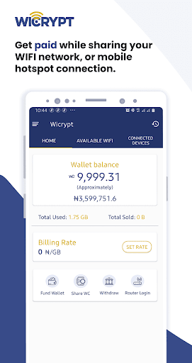 Dengan Wicrypt, Anda dapat terhubung ke WiFi Wicrypt apa pun di dekat Anda dengan harga terjangkau dan tetap terhubung ke Internet.