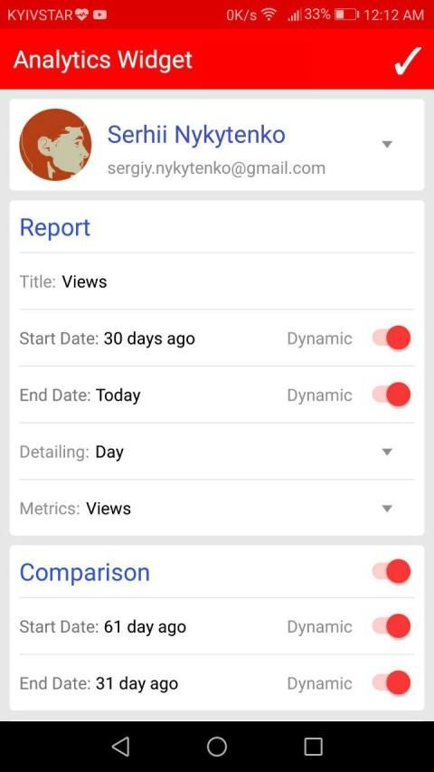 Widget for YouTube Channel Analytics has configuring dynamic time period for YouTube Analytics report. For example: Today, Yesterday, 7 Days Ago, 30 Days Ago, N Days Ago or static period as fixed dates.