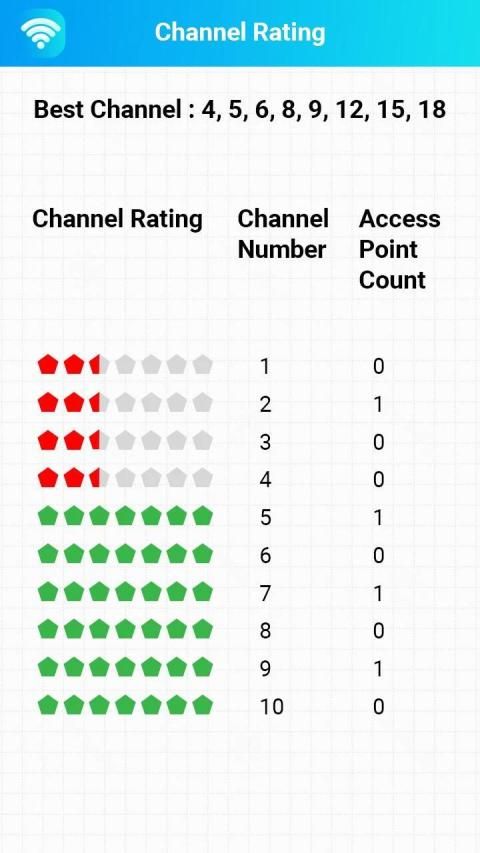 WiFi Router Master - WiFi Analyzer & Speed Test menunjukkan saluran WiFi di sekitar Anda. Membantu Anda menemukan saluran yang kurang ramai untuk router WiFi Anda.
