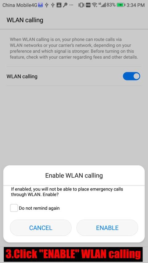 3.Click "ENABLE" WLAN panggilan