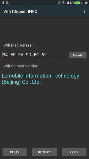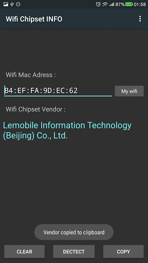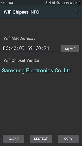 *** WiFi Chipset Info *** Jika Anda perlu mengetahui WiFi chipset manifacturer (vendor) Aplikasi ini melakukan trik untuk Anda dalam satu klik.