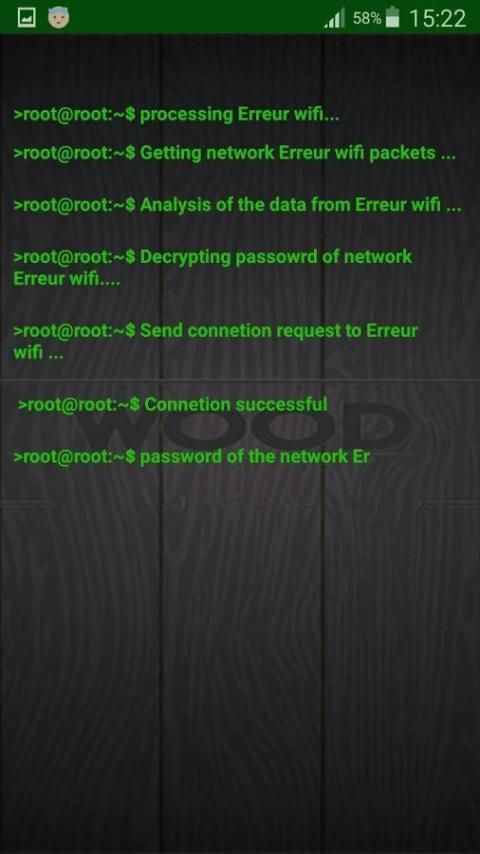 Aplikasi prank ini hacking dan retak setiap tombol nirkabel jaringan terenkripsi dan router password.