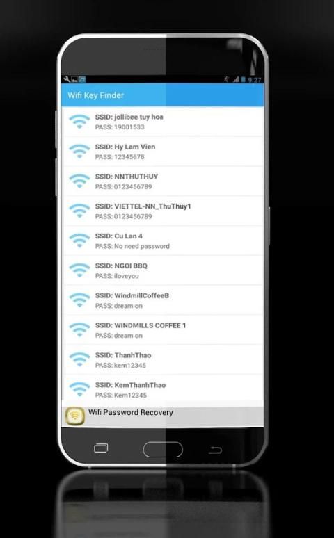 Wifi Key Finder akan secara otomatis menemukan password wifi Anda hilang dalam sekejap. Ini daftar sandi wifi Anda, yang Anda tidak dapat melihat password wifi di pengaturan perangkat default. Anda dapat menyalin password ke clipboard atau ekspor password ke file.