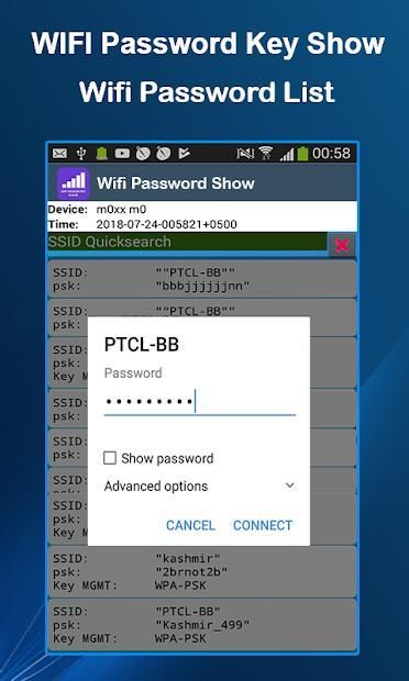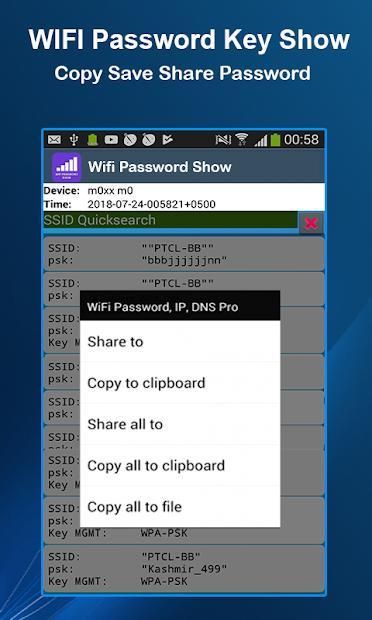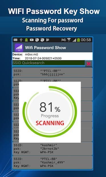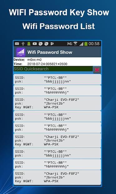 Wifi Password Show 2019 app,wifi password recovery and show helps to get saved wifi passwords. No need to worry.Just open this app and you will get all saved wifi passwords on your device.You will get Wifi networks name and their passwords in a list view.
