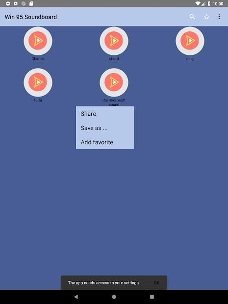 Win 95 Soundboard & ringtone providing you with all Win 95 default system sound that are provided , integrated, and used by Win 95 . with the possibility to share the sounds and set them as ringtone ,notification sound or alarm sound .