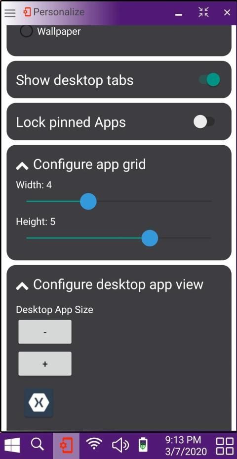 Anda dapat lebih lanjut mempersonalisasi tampilan Anda dengan mengubah ukuran kisi untuk menyediakan lebih banyak ruang untuk aplikasi atau menambah ukuran aplikasi pada desktop. Anda juga dapat mengubah warna latar belakang, atau beralih ke kertas dinding pilihan Anda.