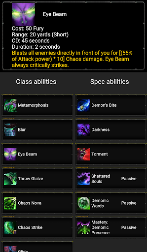 Beta 8.1.0 World of Warcraft Battle untuk Pohon Bakat Azeroth Semua kelas dan spesifikasi. Semua mantra. Deskripsi Mantra Penuh. Tidak ada iklan.