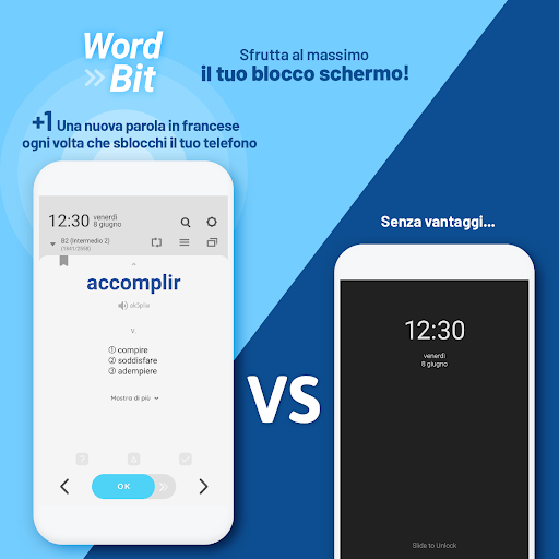 Layar blok ketika Anda Kontrol pesan, lihat YouTube atau cukup periksa waktu, Anda dapat mempelajari selusin kata dan frasa sehari! Semua ini akan menumpuk hingga seribu kata sebulan dan Anda akan secara otomatis belajar dan tanpa penolak.