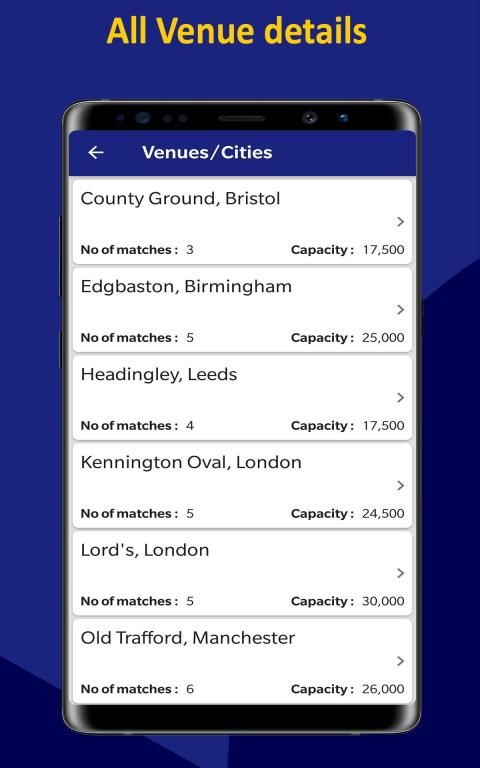 Detail Venue dengan pertandingan Cricket dijadwalkan di setiap venue