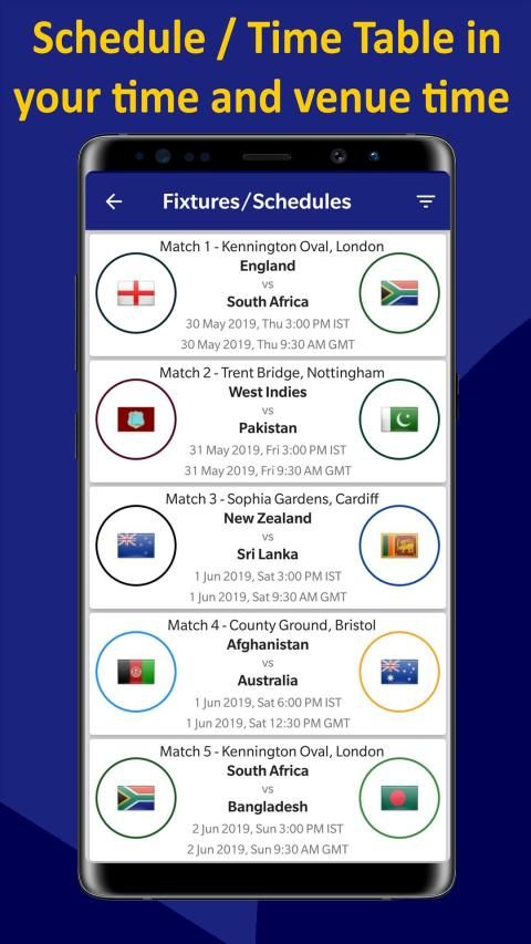 Time Table, Schedule, Fixtures List by Teams and by Venues
