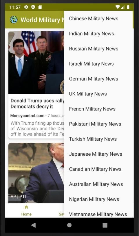 World Military News Adalah agregator Berita Pertahanan dan Militer yang memberi Anda pembaruan Berita Militer dari seluruh dunia. Cukup berita Militer / Pertahanan untuk membuat Anda terlibat selama berjam-jam. Temukan berita negara tertentu dari menu sembulan setelah Anda selesai dengan umpan utama.