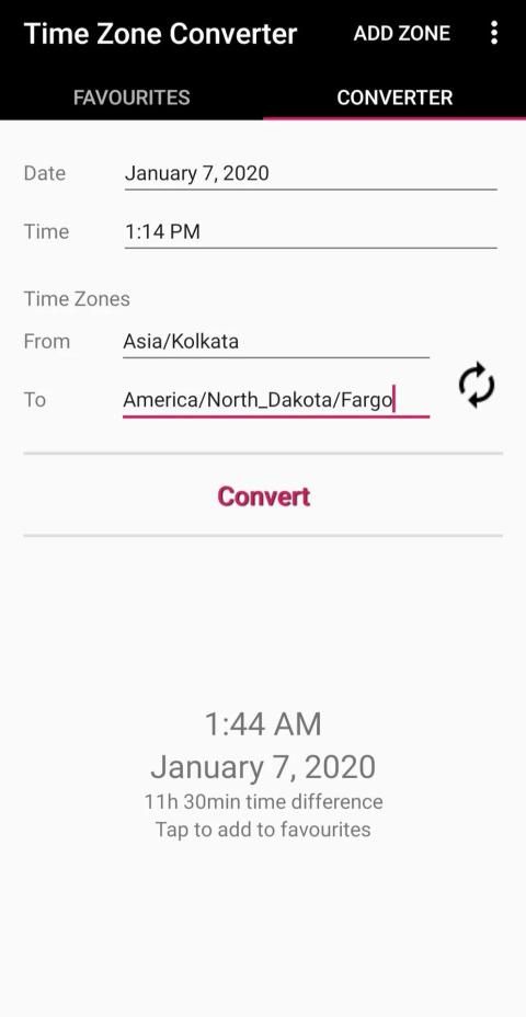 Konverter memungkinkan Anda memilih tanggal / waktu dan mengkonversi waktu dari satu zona waktu ke zona waktu lainnya.
