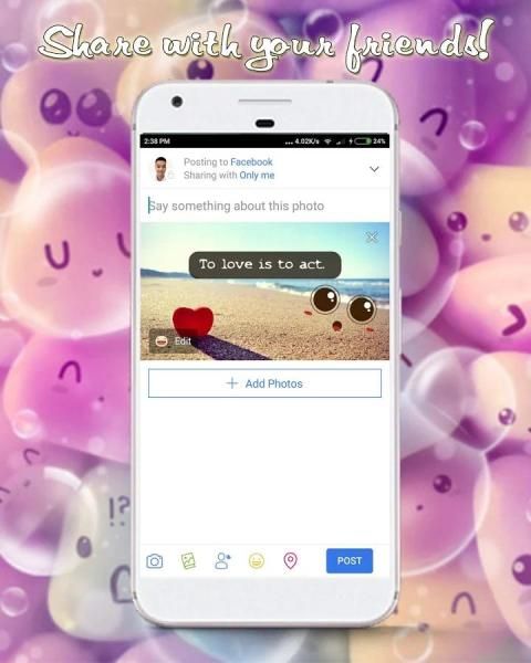 - Selain teks, Anda dapat dengan mudah menambahkan emoji, stiker pada foto Anda.