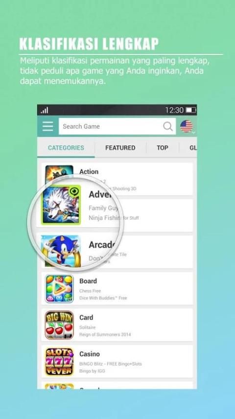 , petualangan , arcade , papan , kartu , santai , pendidikan , keluarga , live wallpaper , musik , puzzle , racing , bermain peran , permainan olahraga , strategi , kata, trivia , widget , simulasi ...