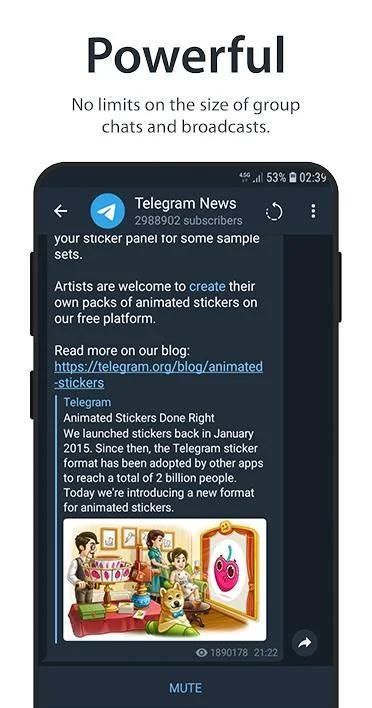 - Pembaruan cepat ke versi baru Telegram