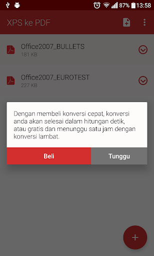 Klik pada tombol untuk menambahkan file untuk konversi. File kemudian secara otomatis dikirim ke server kami untuk konversi. file di-download setelah konversi dilakukan. XPS ke PDF konversi tidak sedang dilakukan pada perangkat Anda sehingga XPS ke PDF converter tidak membebani sumber daya perangkat Anda atau akan menguras baterai.