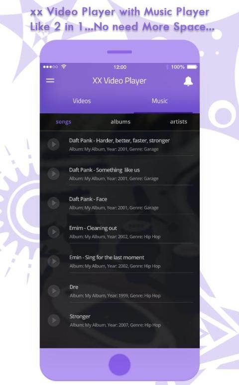 XX Video Player bisa memainkan semua video definisi tinggi ultra (video HD) file juga. fitur equalizer