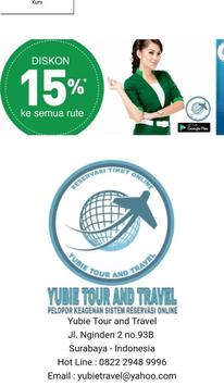 Yubie Travel adalah online travel agent pemesanan tiket online & terlengkap di Indonesia. Komitmen Yubie Travel untuk memberikan pelayanan terbaik bagi Anda telah diwujudkan dengan penghargaan sebagai: