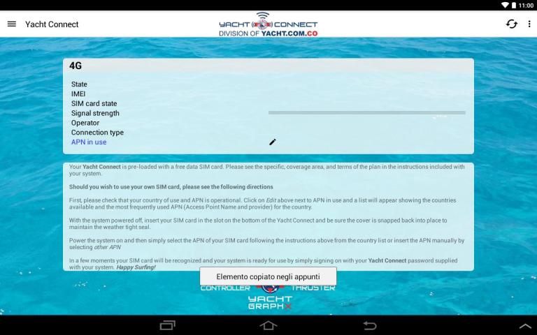 Bagaimana cara kerjanya: Pengguna ternyata pada sistem dan mentransmisikan sinyal wi-fi. Pengguna membuka aplikasi Yacht Connect dan menggunakan tanda-tanda password yang unik mereka ke sistem Yacht Connect. Setelah terhubung, pengguna dari scan untuk sinyal wi fi MENGGUNAKAN app. Pengguna kemudian memilih sinyal wi-fi yang ingin digunakan dan sistem Yacht Connect akan menghubungkan ke sinyal wi fi. Karena gain antena cukup tinggi, koneksi sinyal antara wi fi sinyal dan Yacht Connect akan berada di kekuatan penuh sehingga memberikan koneksi yang kuat dan cepat yang berasal sinyal wi fi untuk konektivitas dan kecepatan yang lebih besar. The Yacht Connect app juga akan memungkinkan untuk pengakuan kartu SIM bila dimasukkan ke dalam kubah, dan dengan mengikuti petunjuk seleksi sederhana dalam aplikasi untuk Country penggunaan, operator dan jenis kartu SIM pengguna dapat mengaktifkan kartu dalam sistem. Setelah diaktifkan, perangkat lunak sistem juga akan secara otomatis mengenali dan link ke kartu SIM dalam sistem Yacht Connect dan ditampilkan di app. Aplikasi ini menampilkan kekuatan sinyal dan kecepatan baik wi fi dan sistem selular setiap saat dan pengguna memiliki pilihan untuk beralih ke sistem selular atau kembali ke wi fi setiap saat.
