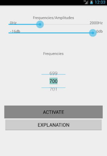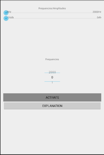 The application allows to set the frequency (between 0 and 2000Hz) of the soundwave and its amplitude (between -16Db and 0Db).