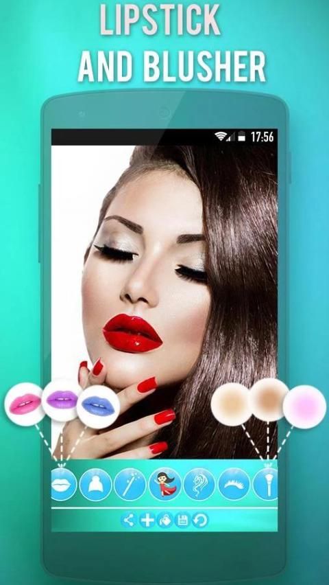 - Mengubah warna Bibir dengan warna pilihan Lipstik untuk Bibir warna lipstik makeup.Different yang dibuat tersedia untuk diterapkan ke bibir Anda di foto dalam kasus Anda lupa untuk menerapkan lipstik sebelum mengambil foto.
