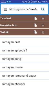 Discover apps for Android here, 20,000+ users downloaded YouTube Video Tag List Finder & Thumbnail Download latest version on 9Apps for free every week! The application is severely widely use. This hot app was released on 2018-07-26. However, has been a fashionable app for a long time.